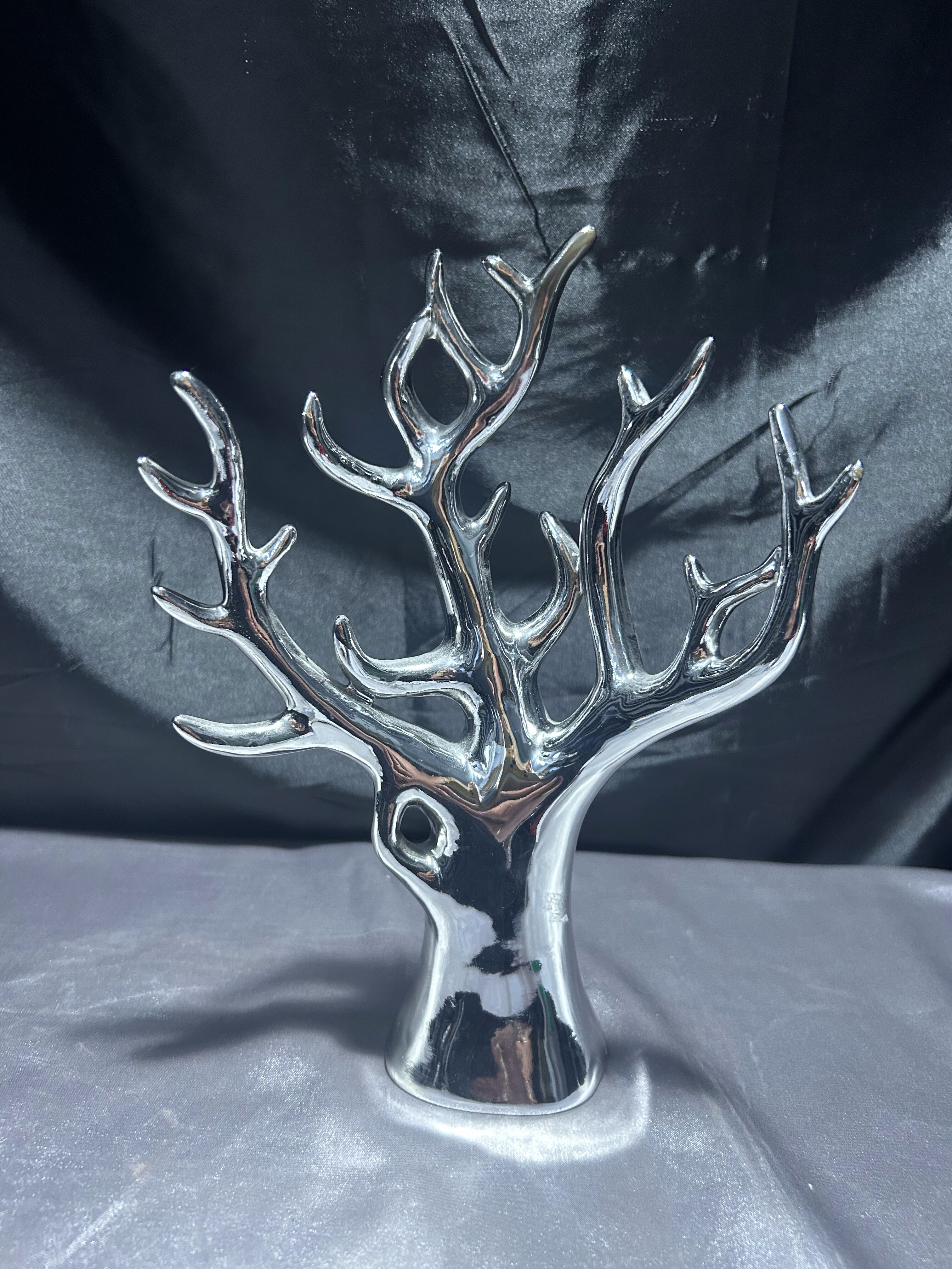 Srebrne drzewko na biżuterię – metalowy stojak dekoracyjny