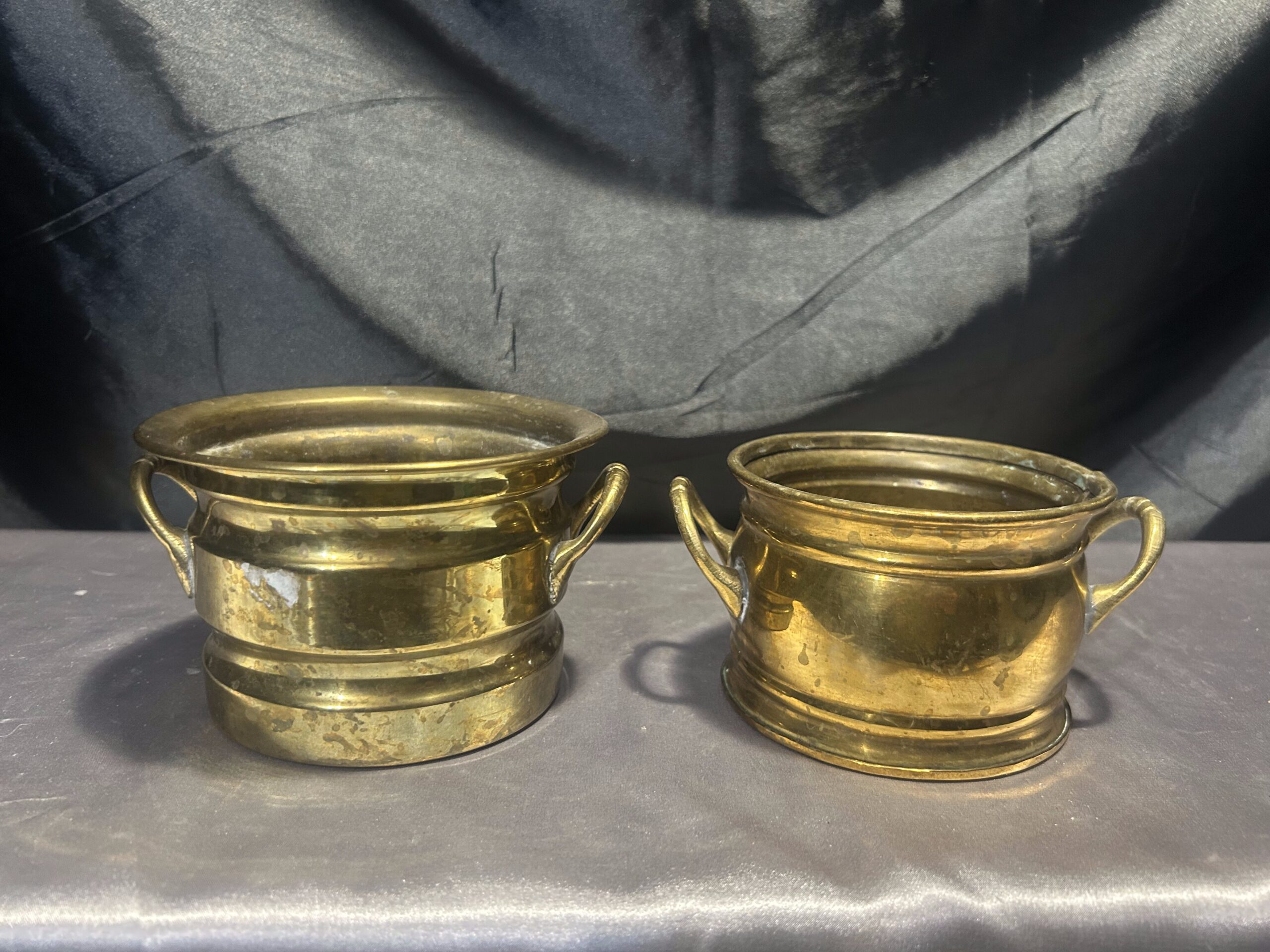 Komplet Mosiężnych Osłonek / Doniczek z Uchwytami – Dwie Wielkości