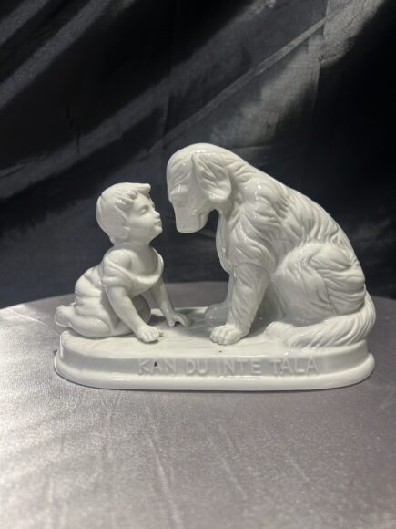 Porcelanowa figurka dziecka z psem – „KAN DU INTE TALA” – sentymentalny urok