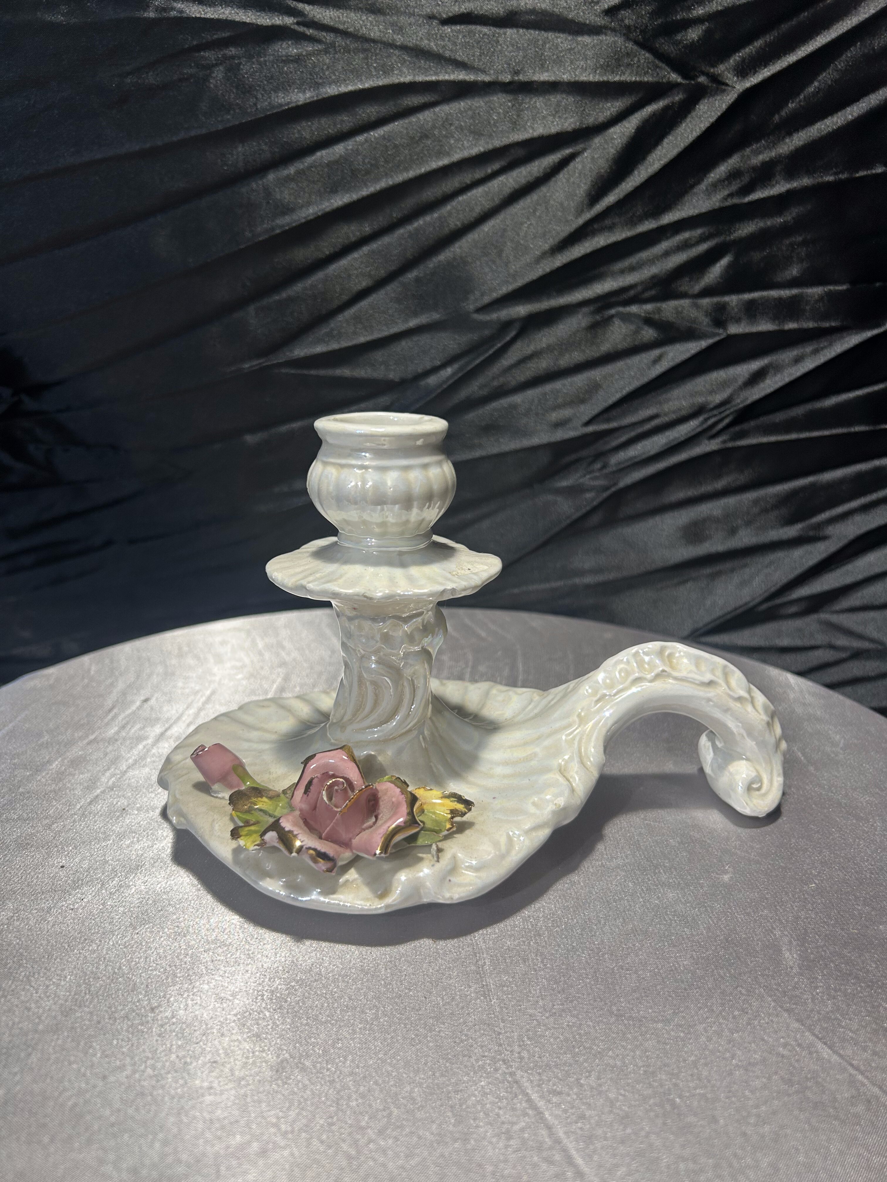 Świecznik ceramiczny – kaganek z kwiatowym zdobieniem