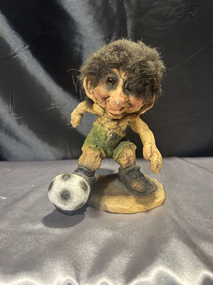 Troll z łysiną i kijem – norweska figurka, autentyczna pamiątka z Norwegii