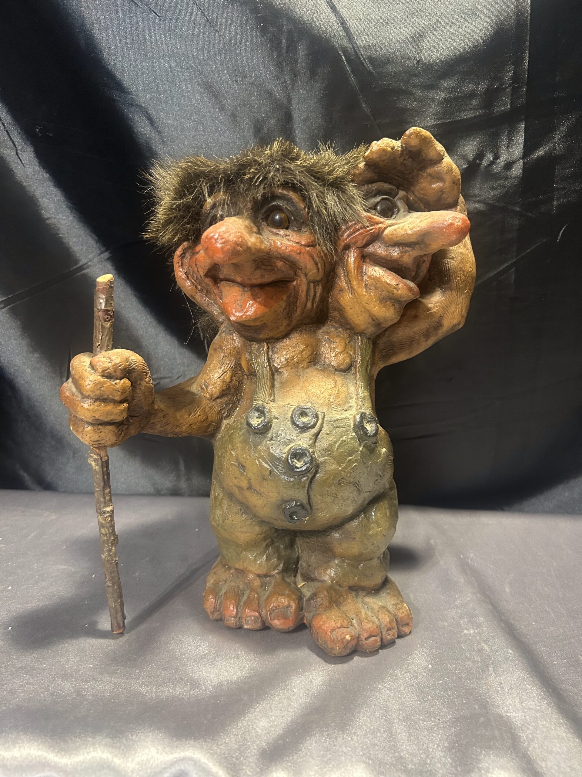 Troll z łysiną i kijem – norweska figurka, autentyczna pamiątka z Norwegii