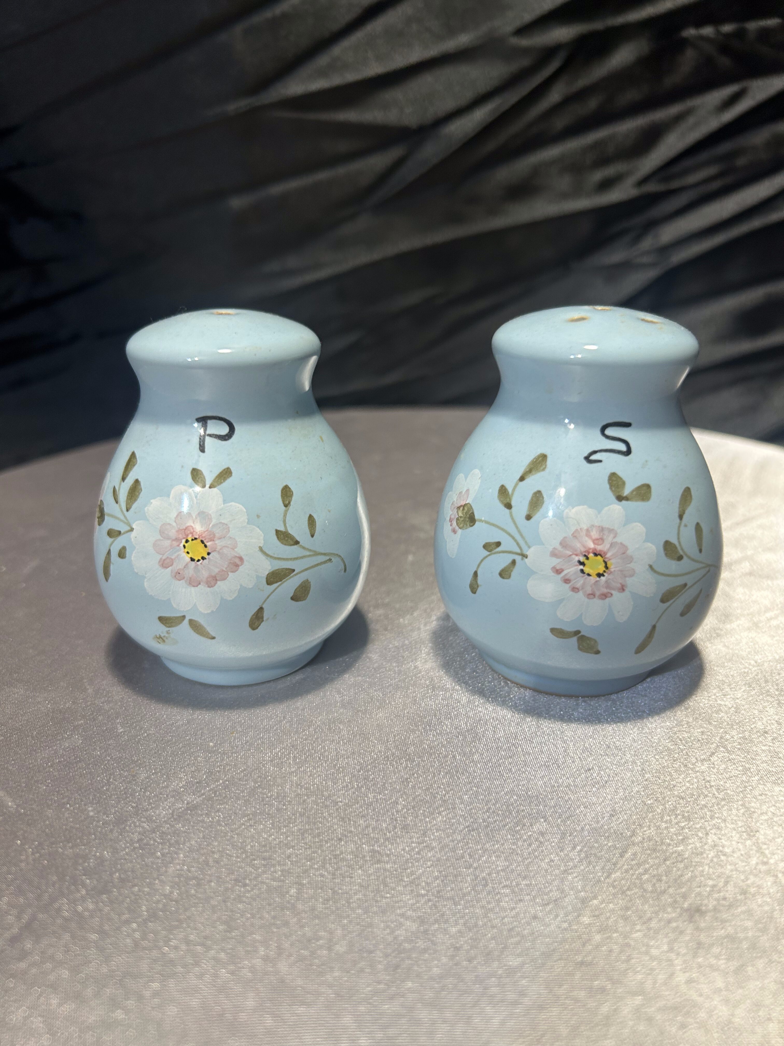 Solniczka i pieprzniczka – błękitne z malowanymi kwiatami