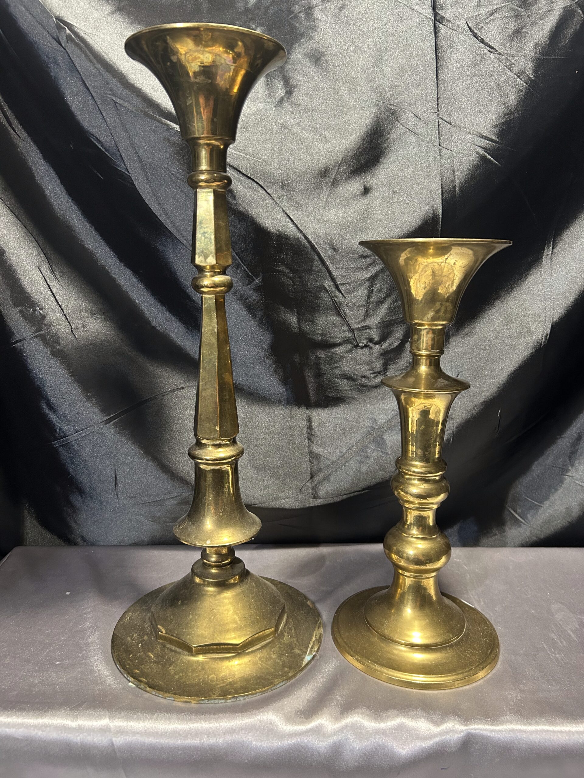 Mosiężne świeczniki na gromnice – imponujący zestaw dwóch sztuk