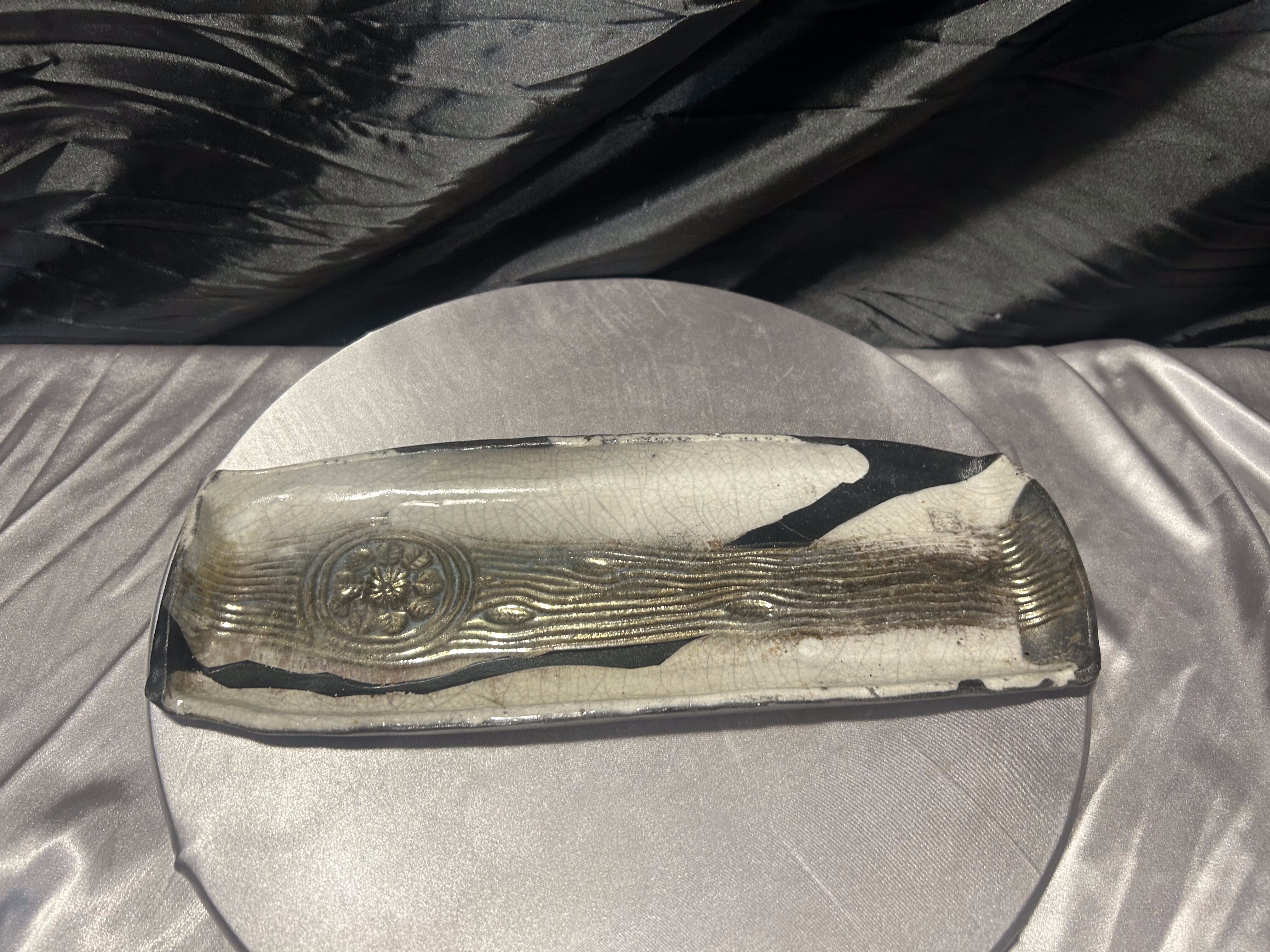 Talerz ozdobny ceramiczny – prostokątny, artystyczna forma – szkliwienie w stylu raku