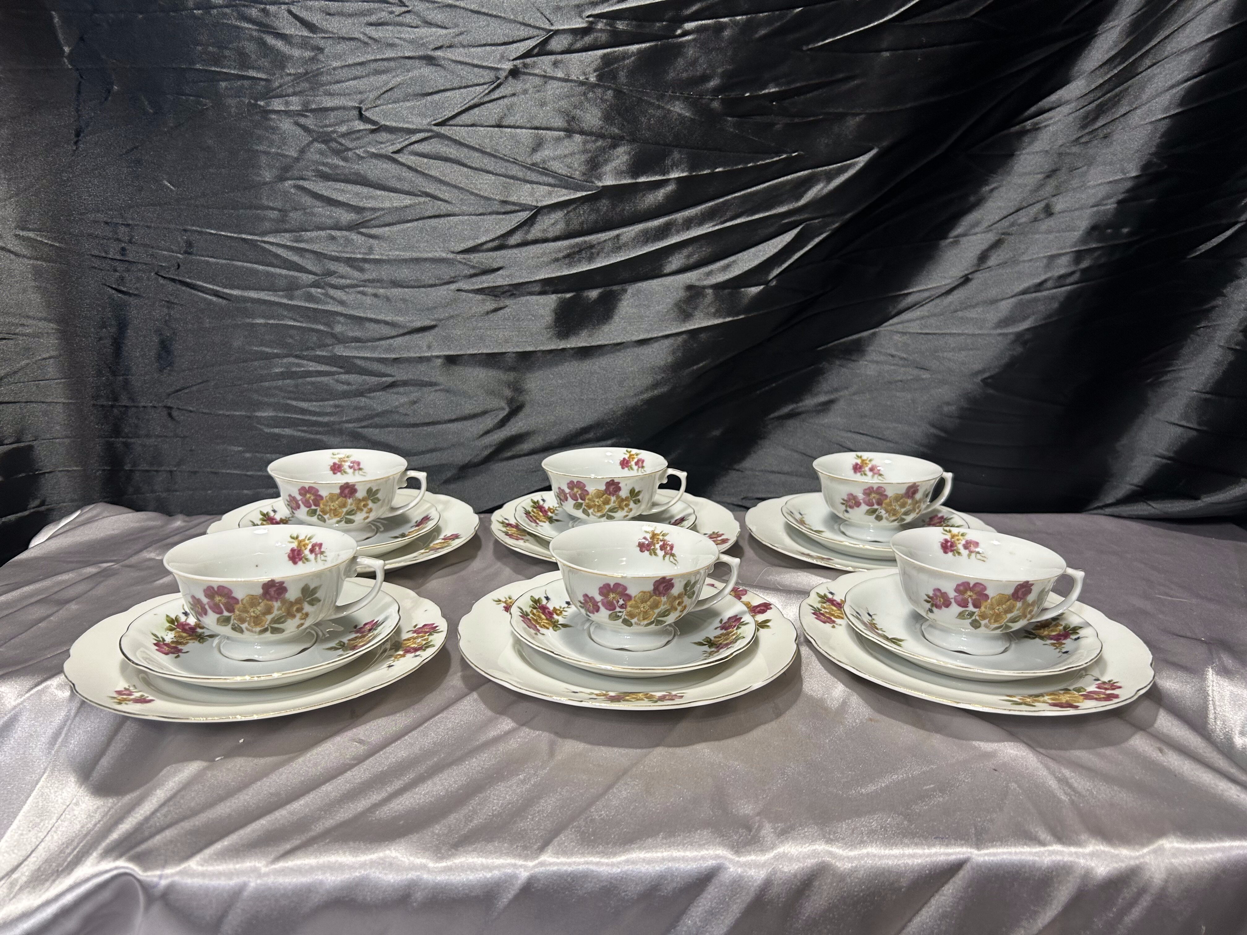 Zestaw czterech filiżanek ze spodkiem i talerzykiem – Winterling Bavaria Germany – porcelana bawarska