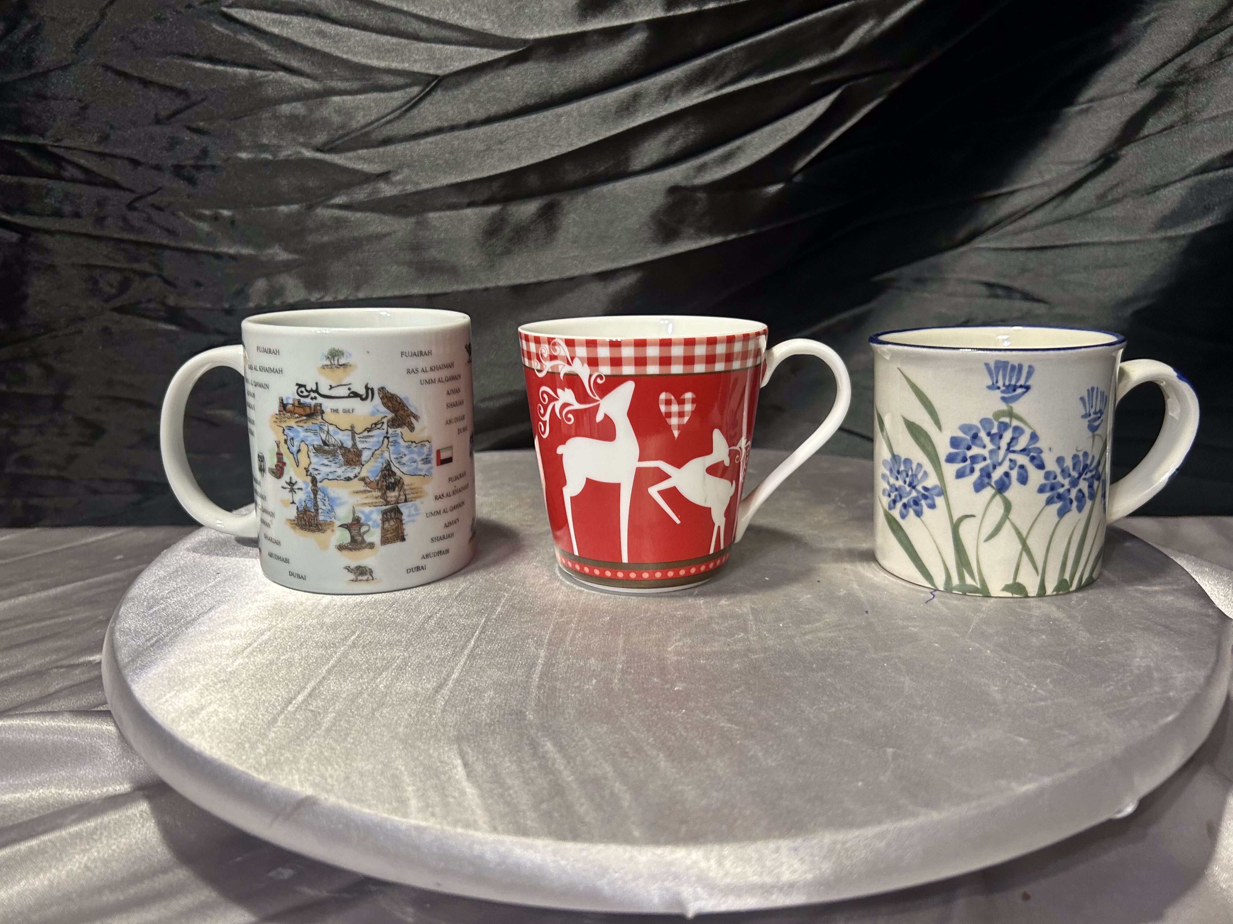 Zestaw trzech sygnowanych kubków porcelanowych – unikatowe wzory